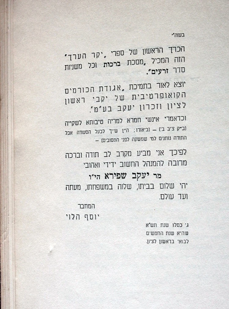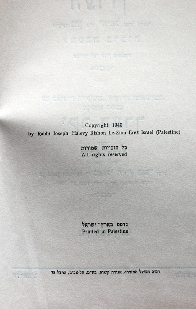“Yekar Haereκη” By Rabbi Joseph Halevy Of Rishon Le-zion Palestine 1940