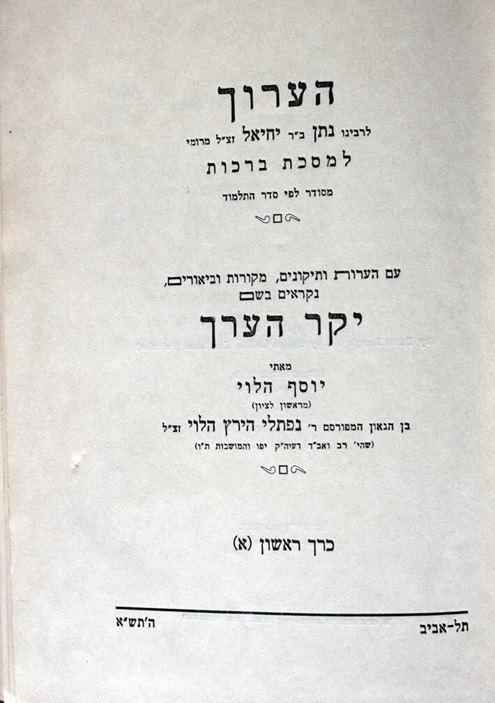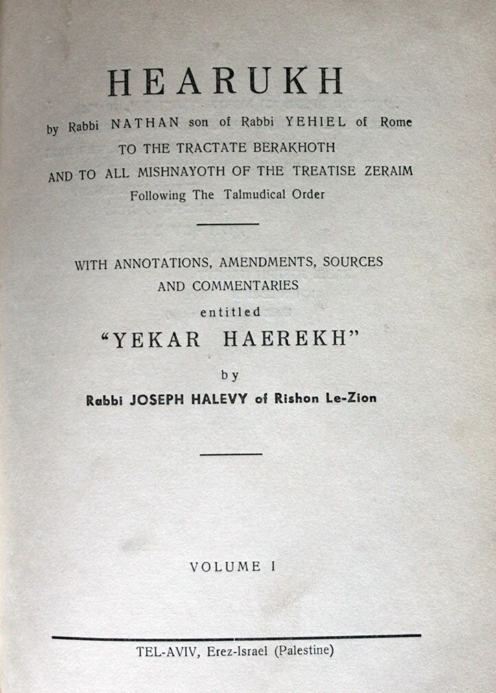 HeArukh Nathan of Rome, Berakhoth Yekar Haerekh Joseph Halevy. הערוך יקר הערך