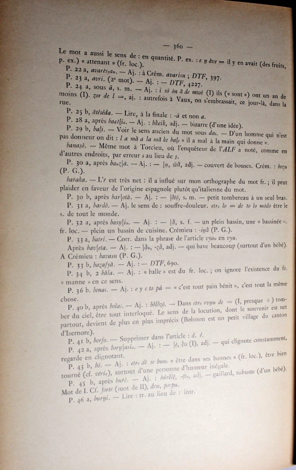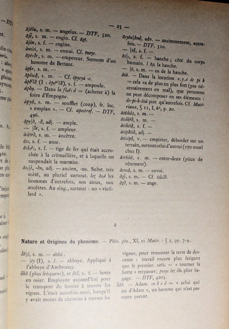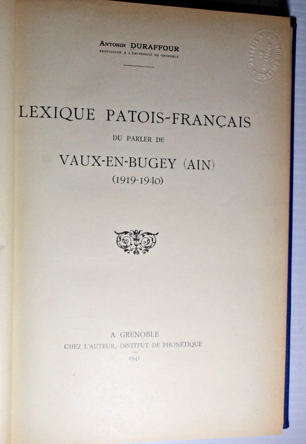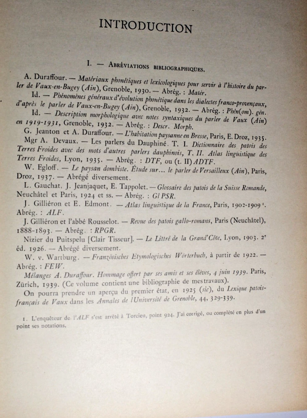 Lexique Patois-Français du parler de Vaux-en-Bugey AIN Ant. Duraffour 1919- 1941