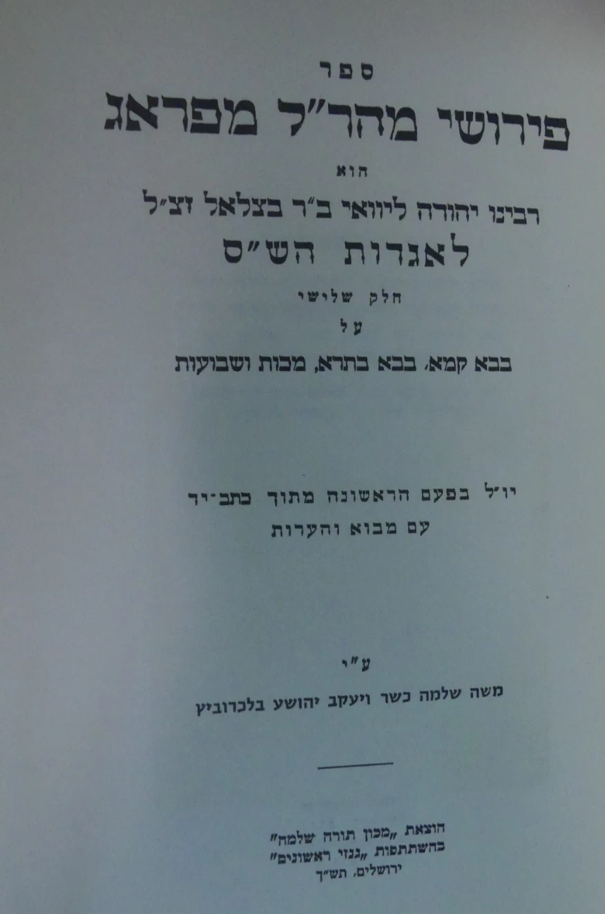 פירושי מהר”ל לאגדות הש”ס בבא קמא, בבא בתרא, מכות ושבועות