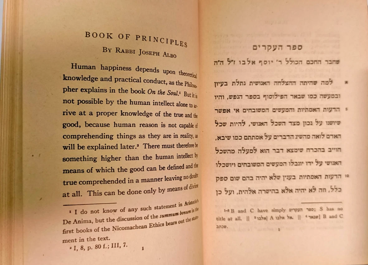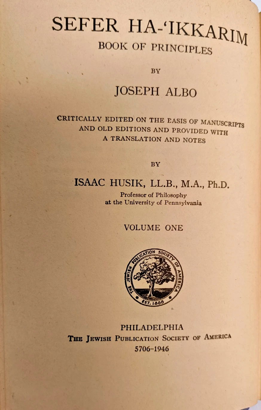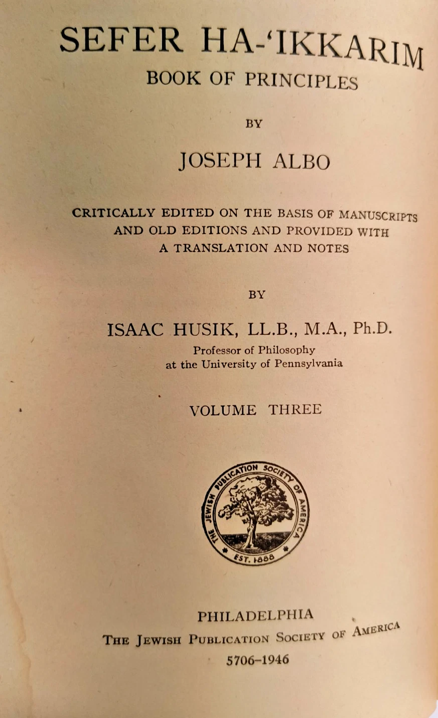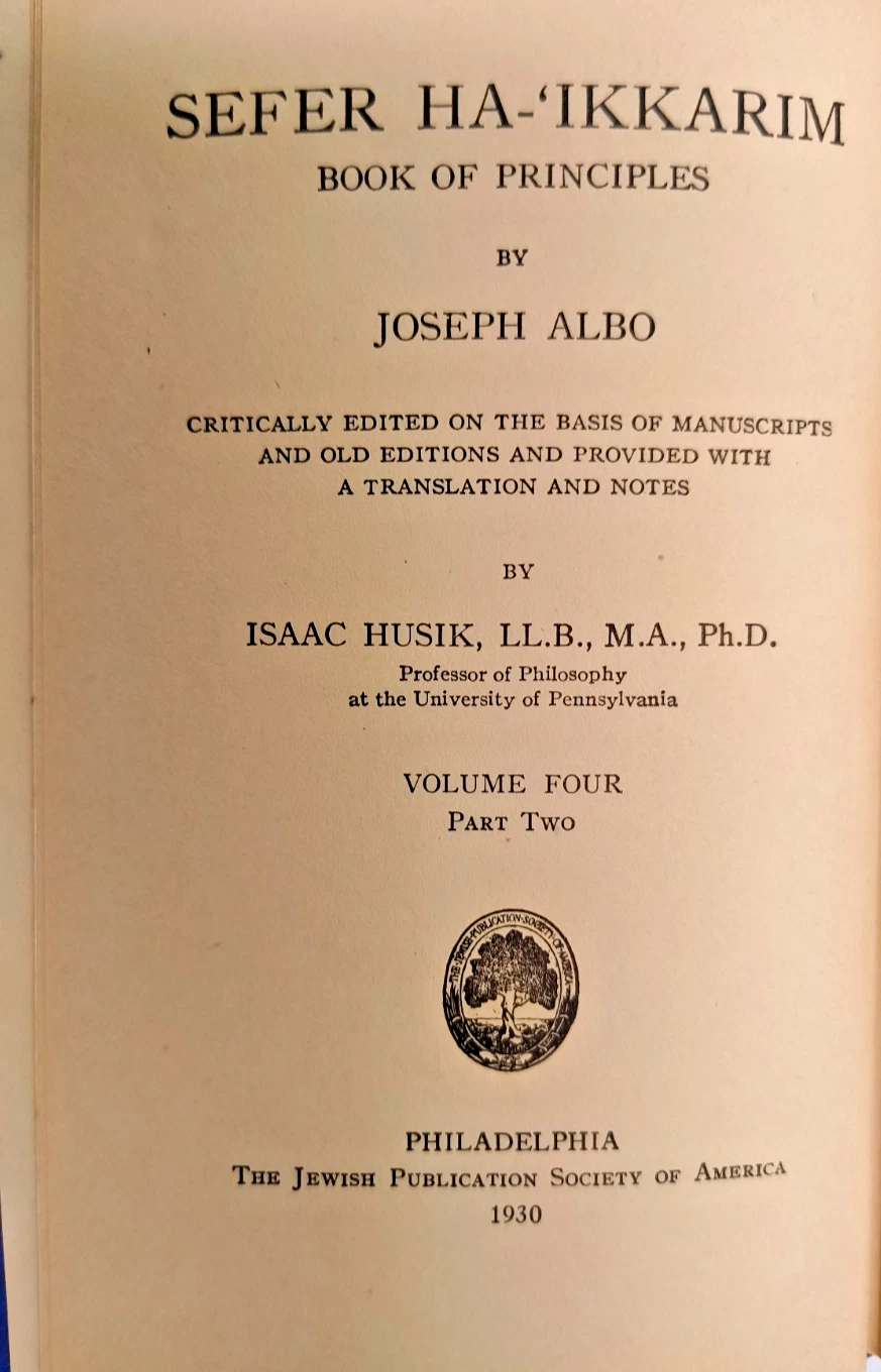 Sefer HaIkkarim Joseph Albo Isaac Husik English -Hebrew