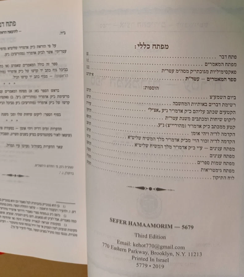 HEBREW only. Chasidic discourses by the fifth leader of Chabad-Lubavitch, Rabbi Shalom DovBer Schneersohn, delivered during the years 5679 (1919). The discourses of Rabbi Shalom DovBer are distinctive in their systematic approach, lengthy explanations and broadness of scope. It is because of this that he was given the appellation “The Maimonides of Chasidism.”