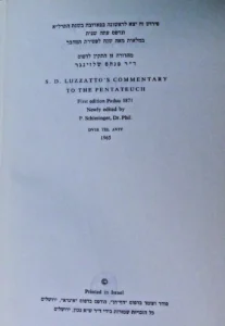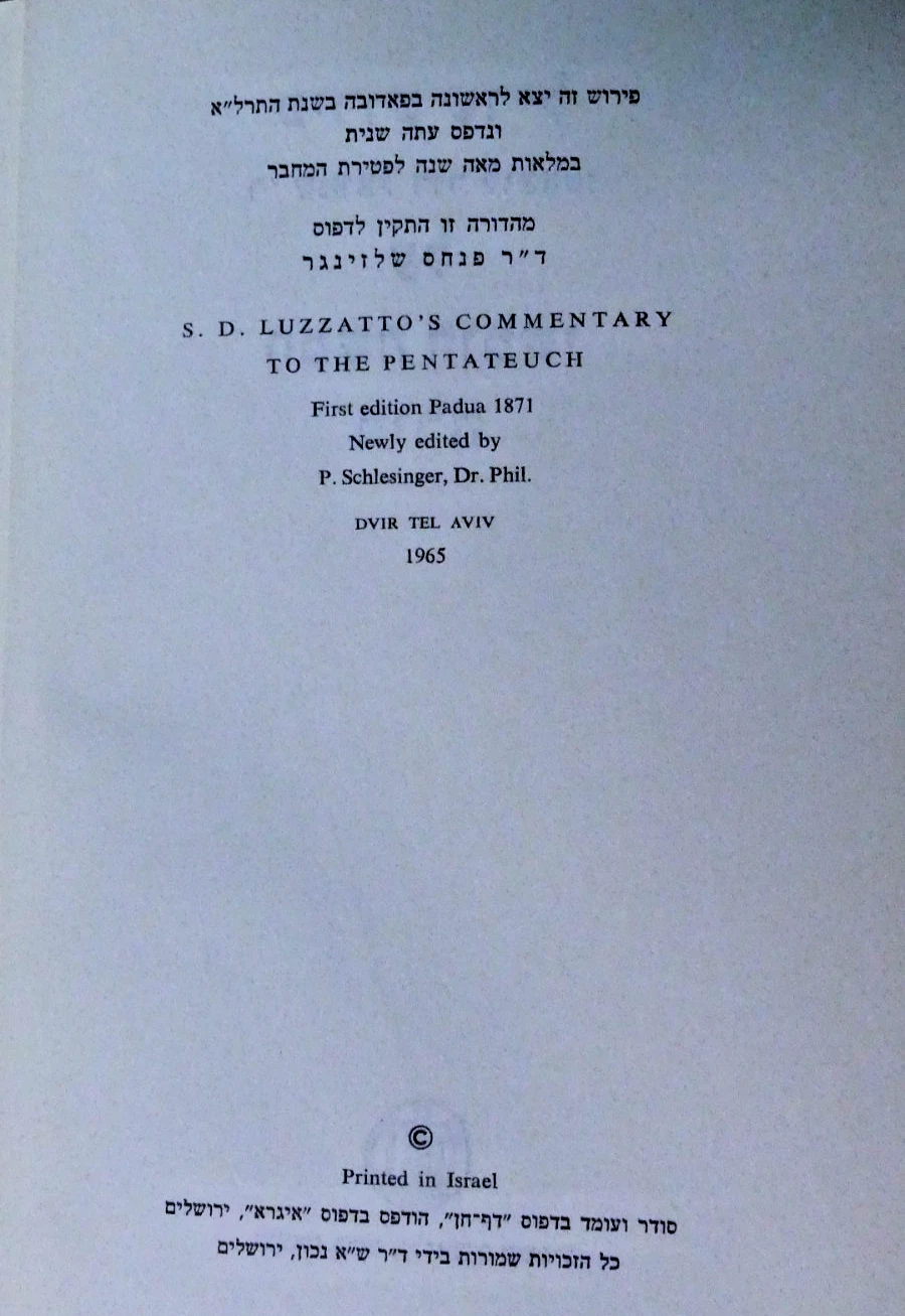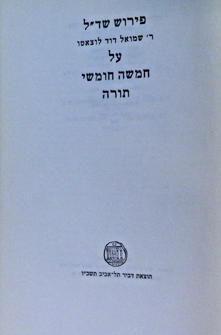 פירוש שד״ל : על חמשה חומשי תורה, לוצאטו / Perush Shadal : ʻal ḥamishah ḥumshei Torah.