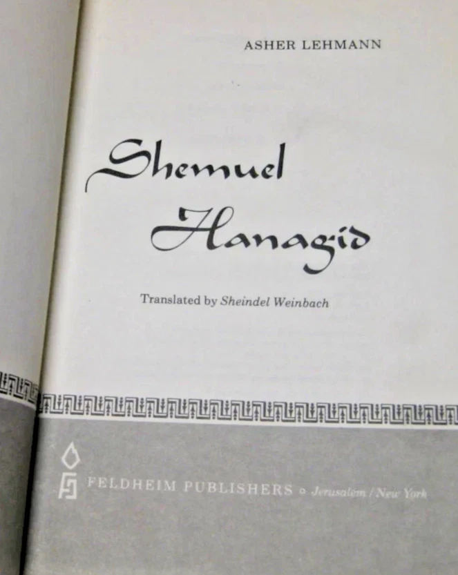 Shemuel Hanagid. Asher Lehmann Hardcover.