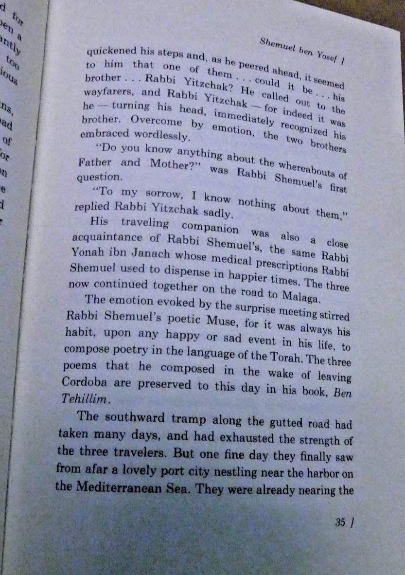 Poet and prince, scholar and military commander, he was the leader of Spanish Jewry in the 11th century and the recognized Torah authority of his time. Born at the end of the 10th century into a family of eminence, he received an excellent education in the Written and Oral Torah, and grew into a major authority in halachah, acknowledged by the great geonic scholars of his time. His writings were to have a direct influence on such Talmudic scholars as R. Yitzchak Alfasi (Rif). With his outstanding general knowledge, he could successfully dispute the spokesmen of the Muslim faith; and few could equal his elegance in written Arabic. Reputedly, he wrote some reports for a steward of the vizier of Granada. So filled with admiration was the vizier at Shemuel’s style and flashes of wisdom, that he made the learned Jew part of his staff. In 1027 the Jewish people made him nagid —the head of all Spanish Jewry.