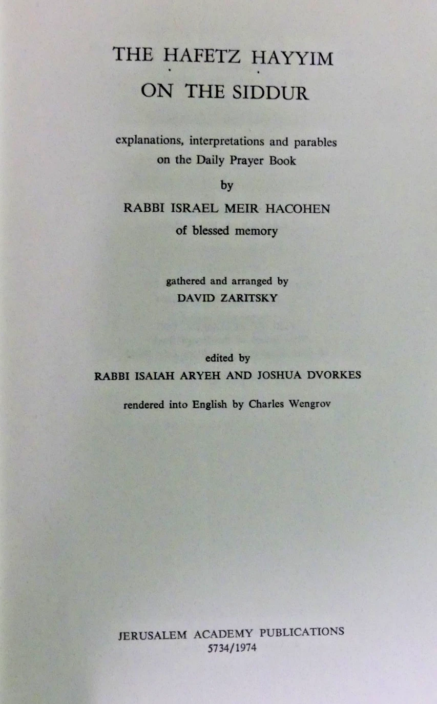 The Hafetz Hayyim on the siddur: Explanations, interpretations  Chofetz Chaim