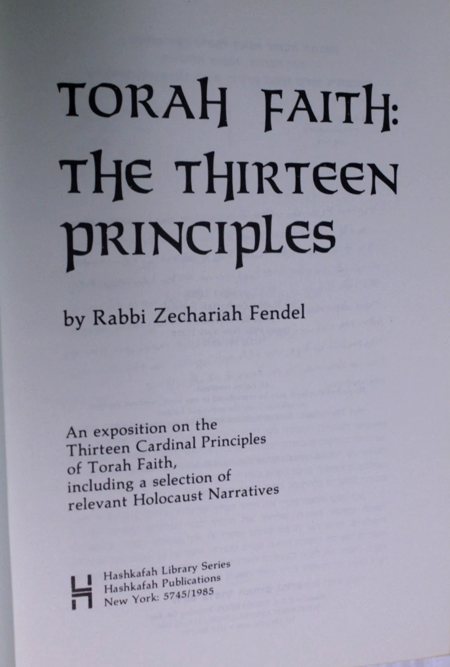 Rabbi Zechariah Fendel. Torah Faith The Thirteen Principles. Holocaust