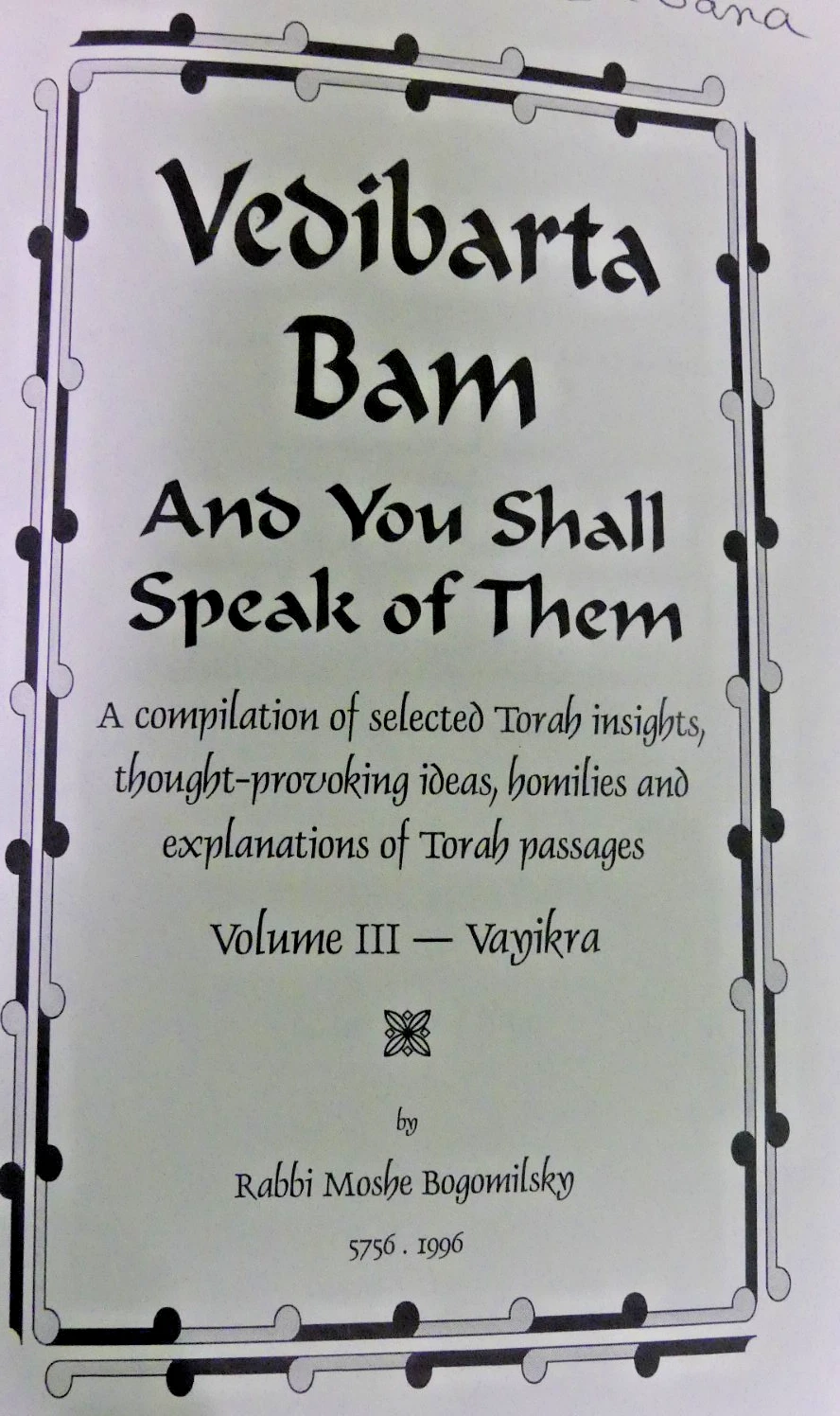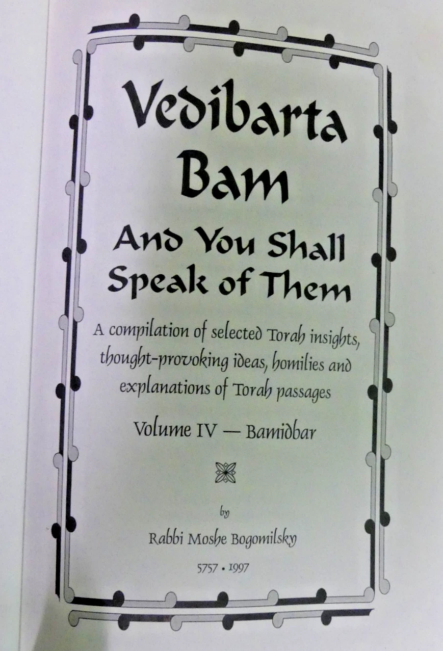 Vedibarta Bam And You Shall Speak Of Them: A Compilation Of Selected Torah Insights, Thought-provoking Ideas, Homilies And Explanations Of Torah Passages by Moshe Bogomilsky.